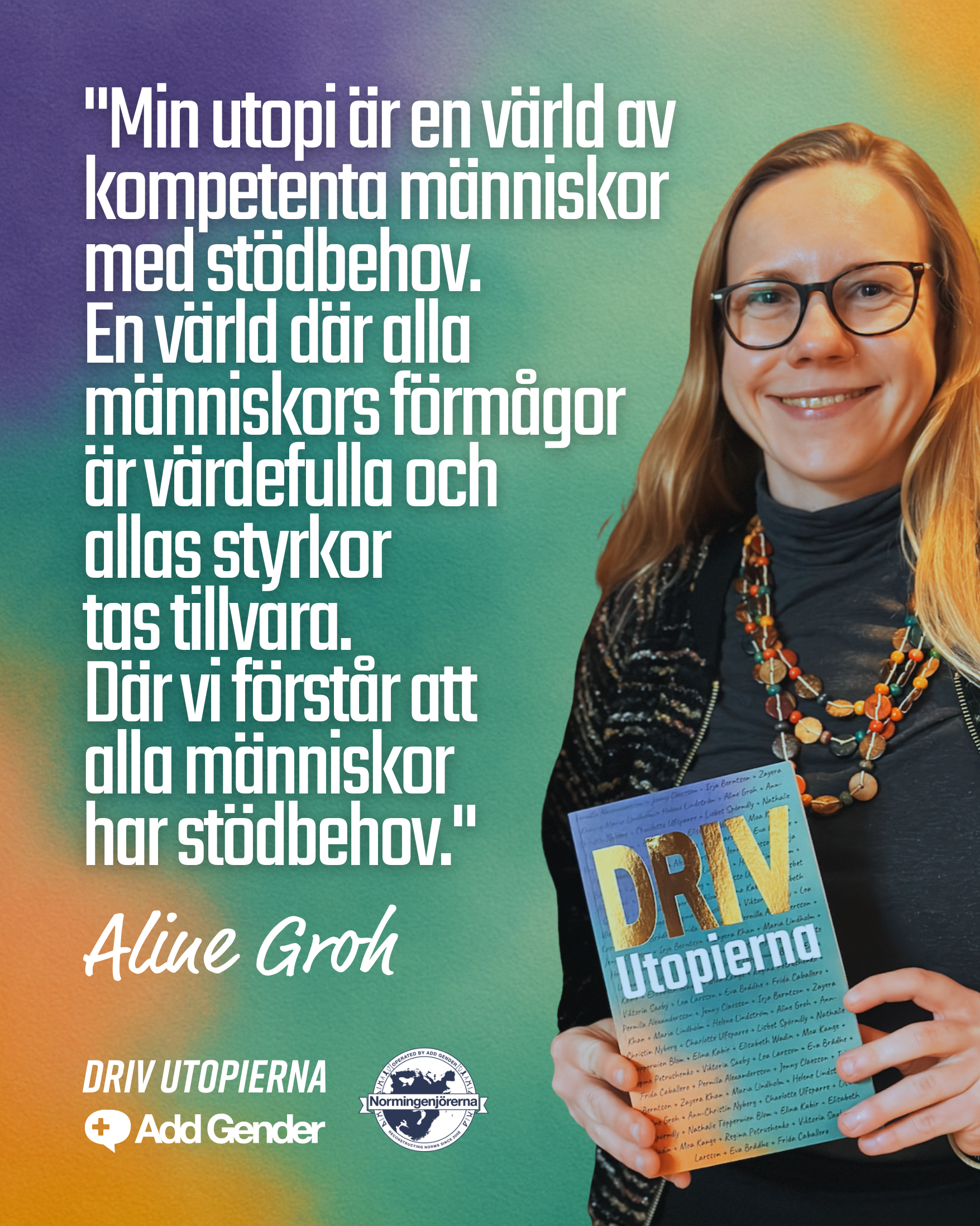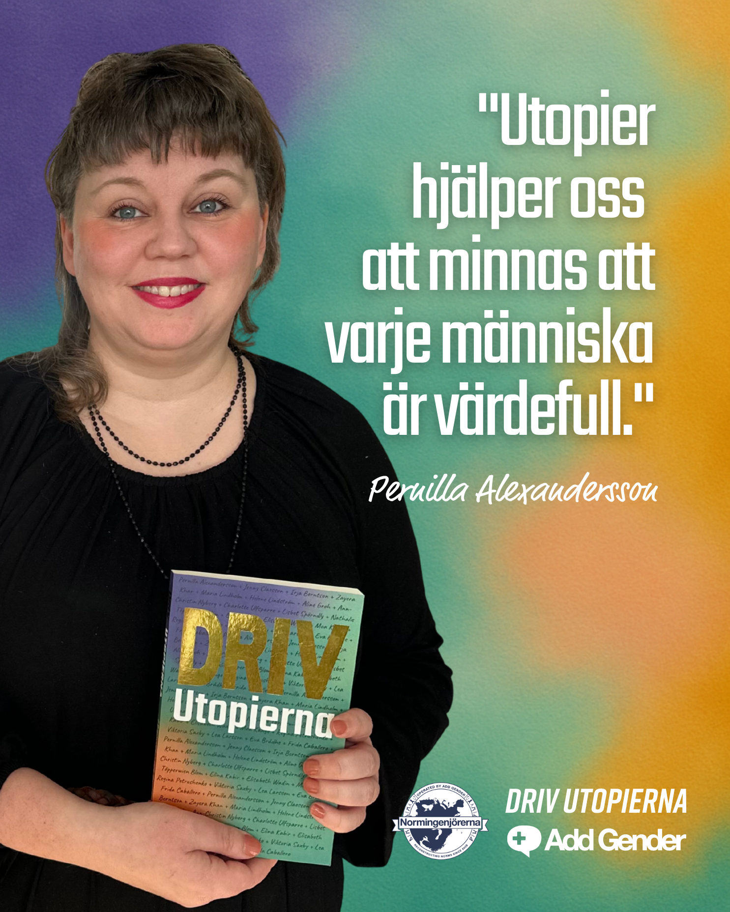 ”Driv Utopierna!” är en antologi fylld av starka, tankeväckande berättelser från olika skribenter – utvalda ur ett nätverk av certifierade normingenjörer och förändringsledare som med olika kompetenser och perspektiv arbetar för jämlikhet i näringslivet, arbetslivet och i samhället i stort.